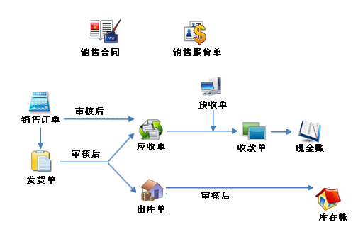 銷售管理:銷售管理對(duì)產(chǎn)品進(jìn)行銷售。其中包括銷售報(bào)價(jià)單、銷售合同、銷售訂單、銷售發(fā)貨單、銷售價(jià)一覽、銷售退貨單、零售單等等。