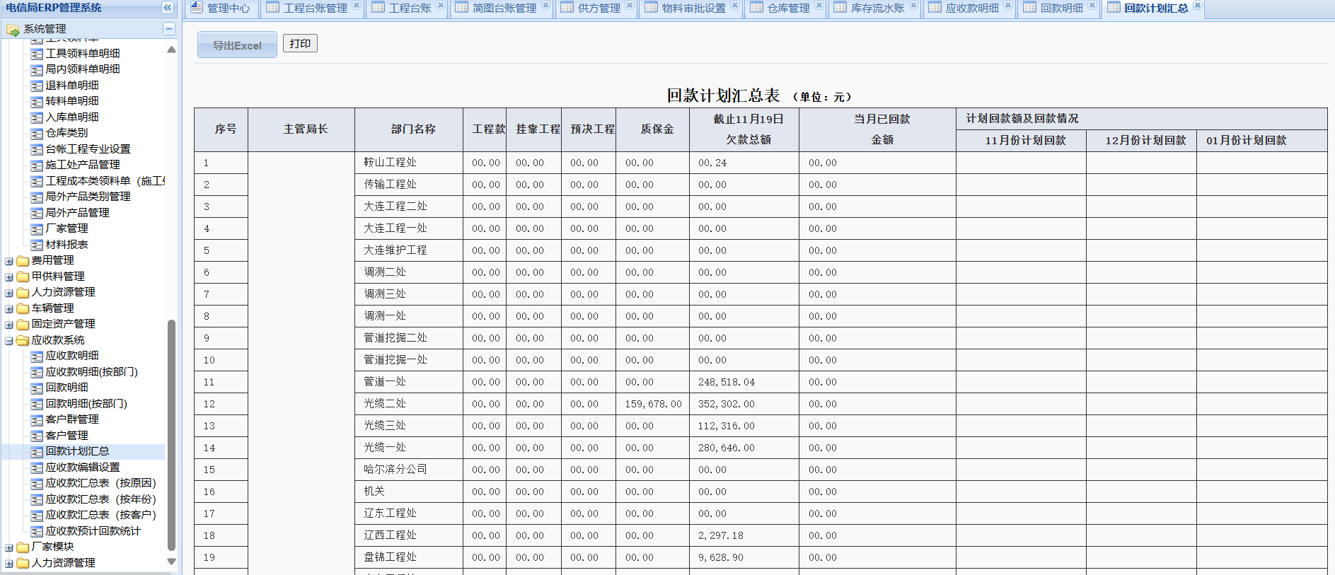 臺(tái)賬管理、項(xiàng)目工程管理、進(jìn)度管理、合同核算管理、物料管理、費(fèi)用管理、甲供料管理、固定資產(chǎn)管理、應(yīng)收款管理、人力資源管理、審批管理、統(tǒng)計(jì)分析。